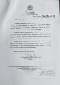Pedro Américo solicita limpeza e requalificação das ruas próximas do Parque Linear