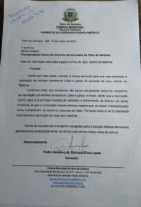 Pedro Américo solicita vacinação para cães e gatos no Povo.de Jacú