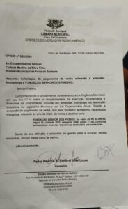 Pedro Américo solicita verba impositivas a Fundação Senhor dos Passos