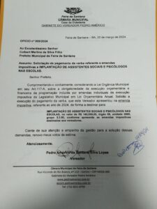 Pedro Américo solicita verba impositivas a Implantação de Assistentes Sociais e Psicólogos nas Escolas