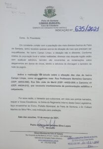 Pedro Américo solicitou Requalificação com Asfalto nas Ruas: Professora Bertolina Carneiro, São João do Meriti e Caminho 41, bairro Campo Limpo