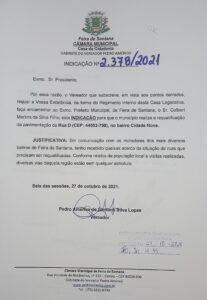 Pedro Américo indica calçamento com paralelepípedo na Rua João Lima de Oliveira